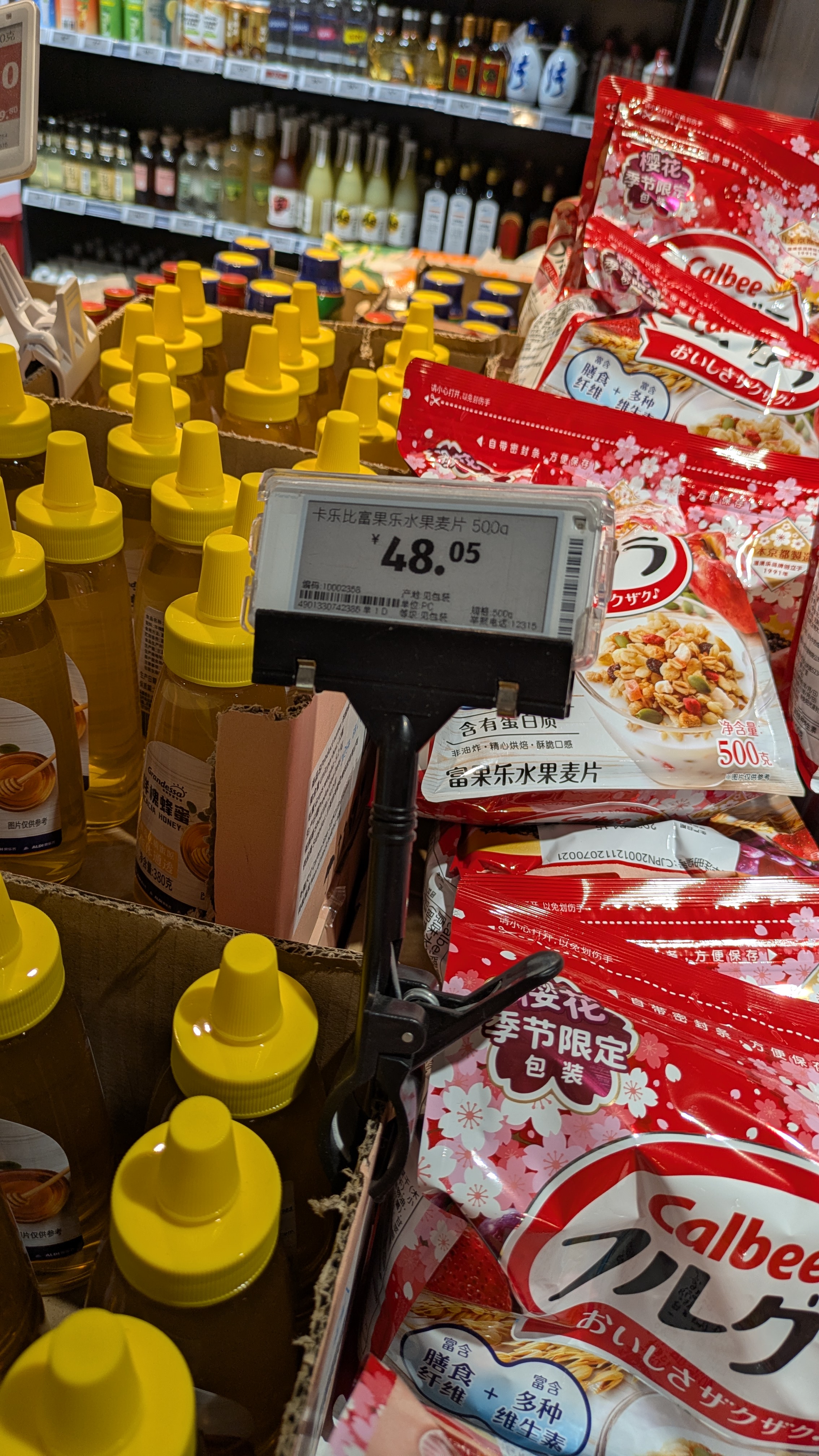 カンファレンスの次の日は日本への移動日です。 ホテルで朝食を食べてから、近所のスーパーにお土産を物色しに出かけました。 カルビーのフルグラは中国でもカタカナで「フルグラ」と書いて売っていました。 価格は500gで48.05元(1,030円)とすごく高くてびっくりしました。