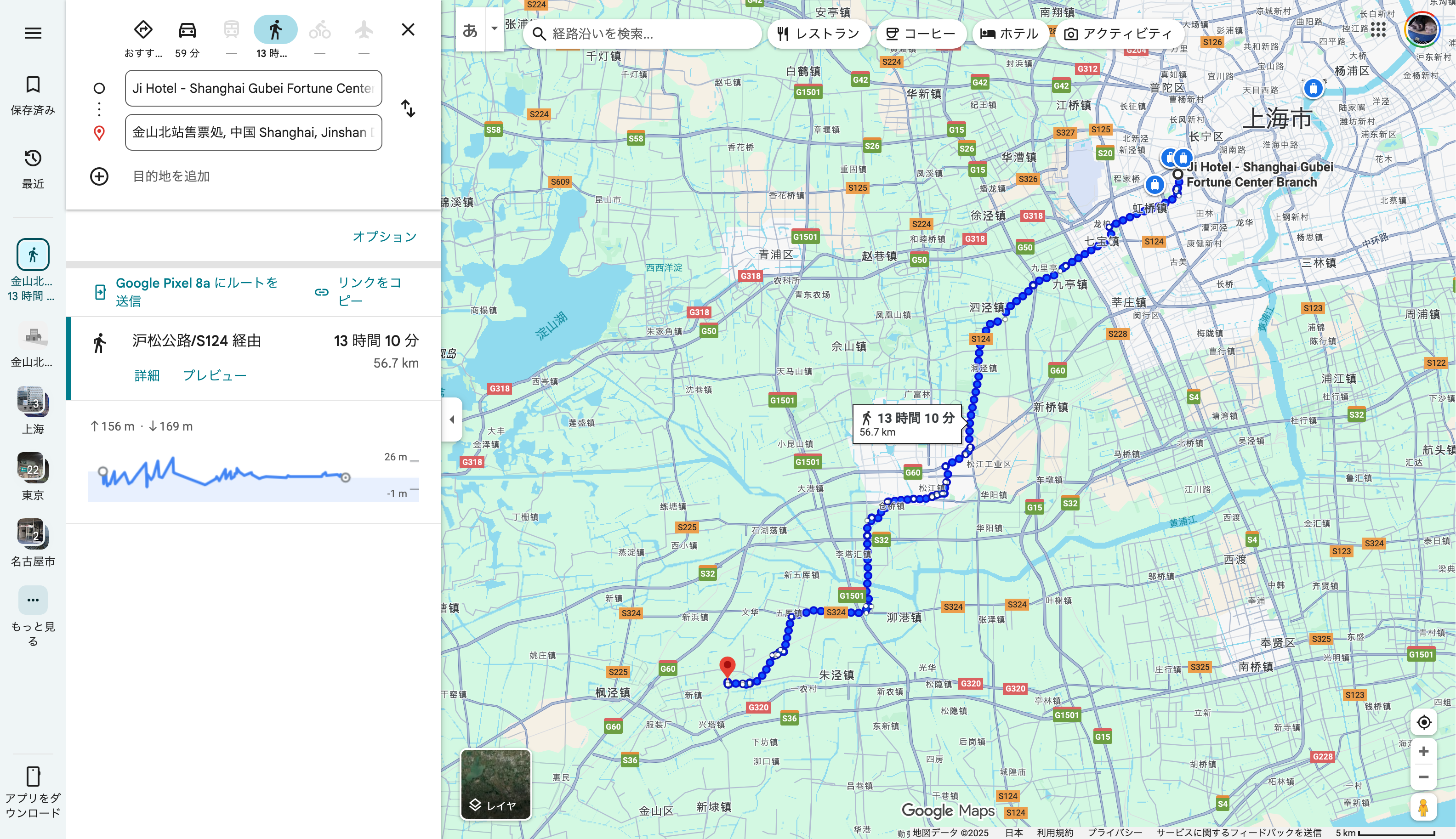 接続ができてもまだ問題はあります。 中国に行く前に事前にホテルからLEGOLAND上海へのルートを調べようとしました、するとGoogleマップでは徒歩と自動車のルートしか出てきません。 そうです、Googleマップでは中国の電車を使ったルート検索ができないのです。 調べてみると地図アプリとしては「高徳地図」または「百度地図」を使用するのが一般的のようです。