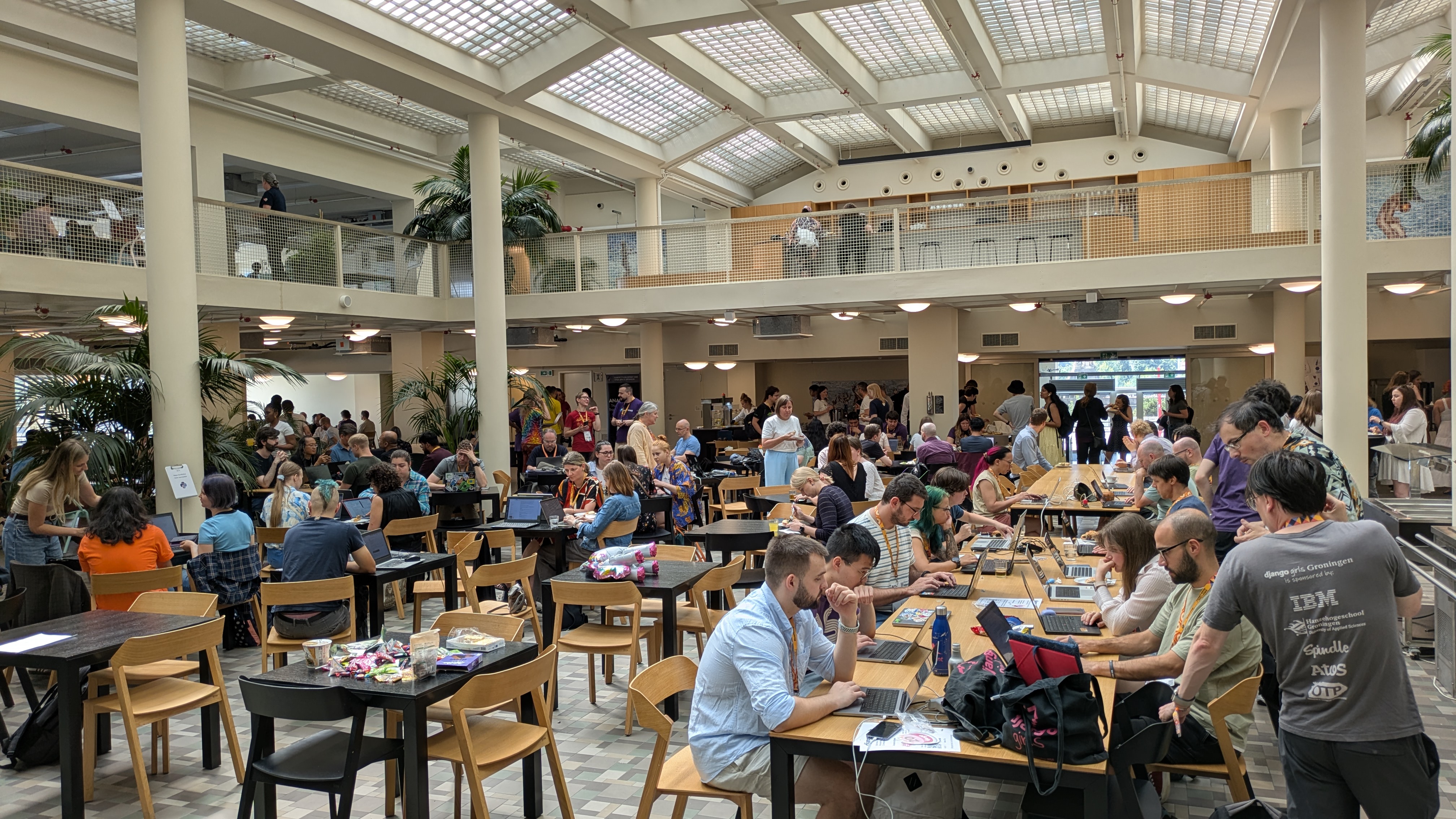 スプリント会場はこんな感じで、カフェスペースにたくさんの人が集まっています。 2階も解放されており、とてもおしゃれな場所でした。