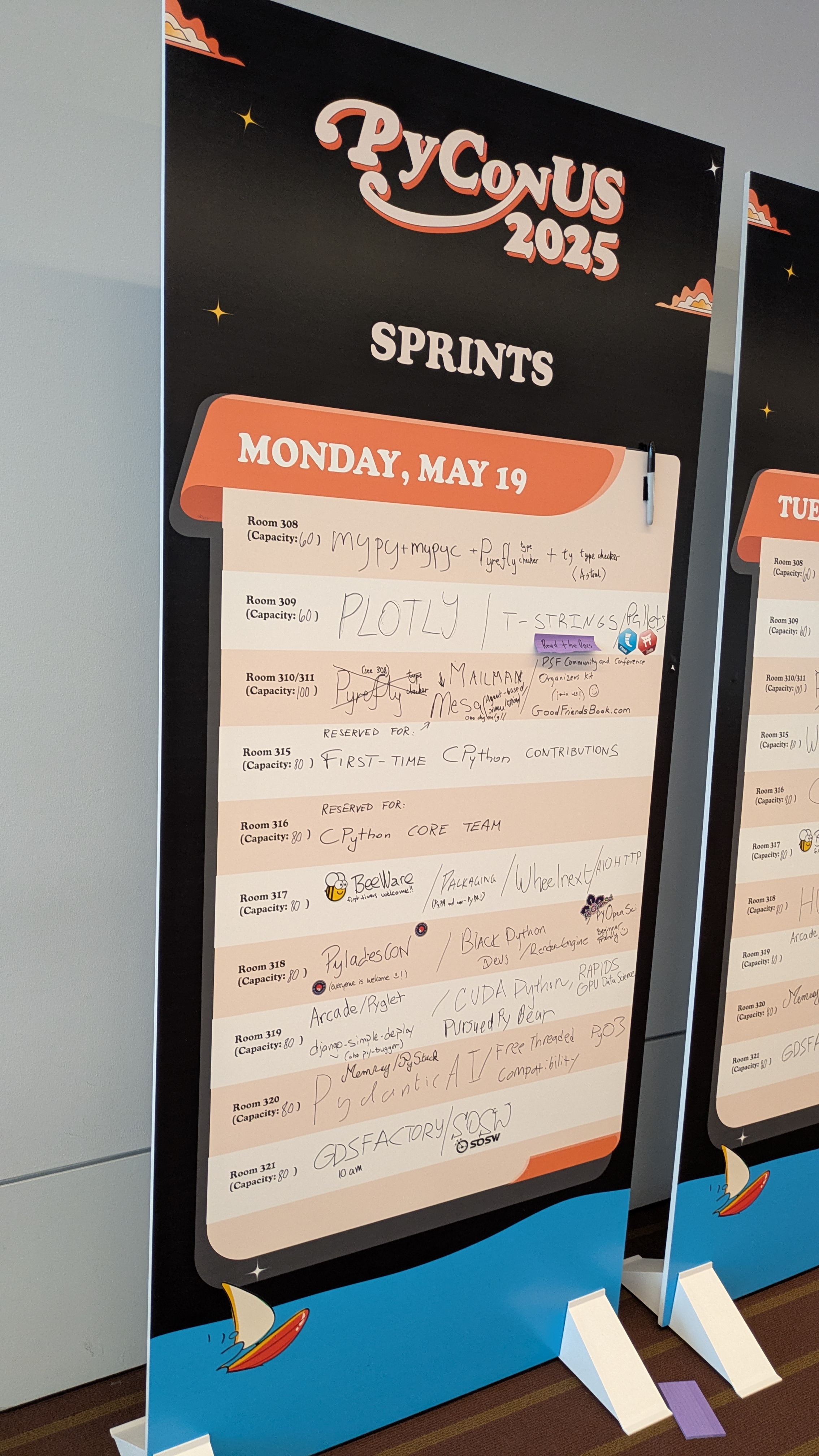 カンファレンスのあとは開発スプリントです。 スプリントとは、Python関連のオープンソースのプロジェクトに参加し、一緒に開発をするというイベントです。 PyCon US 2025のスプリントは5月19日(月)から22日(木)の4日間開催されます。筆者は1日目のみ参加しました。